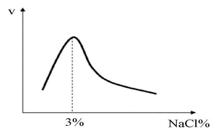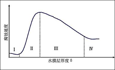 (4)无机盐:电解质的存在可以大大提升水的电导率,加快电子转移速度。在室温下浸泡在氯化钠溶液中的钢铁,在浓度为3%时腐蚀速率达到最大。当溶液中盐的成分进一步提升时,会影响氧气的溶解度,腐蚀速率逐渐下降。
