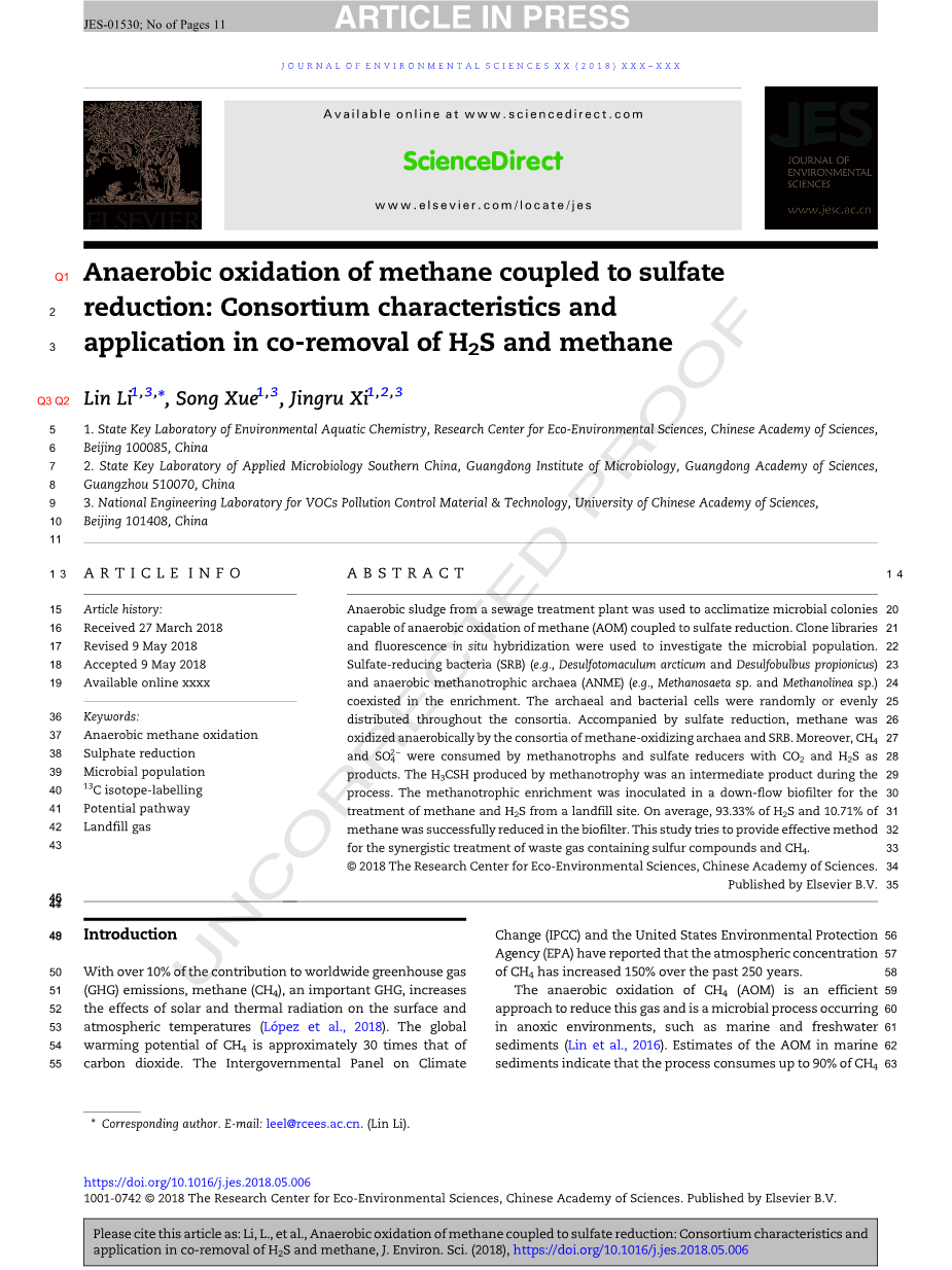 用于含硫化合物废气与CH的协同处理4。中国科学院生态环境科学研究中心由爱思唯尔B.V. 35出版。