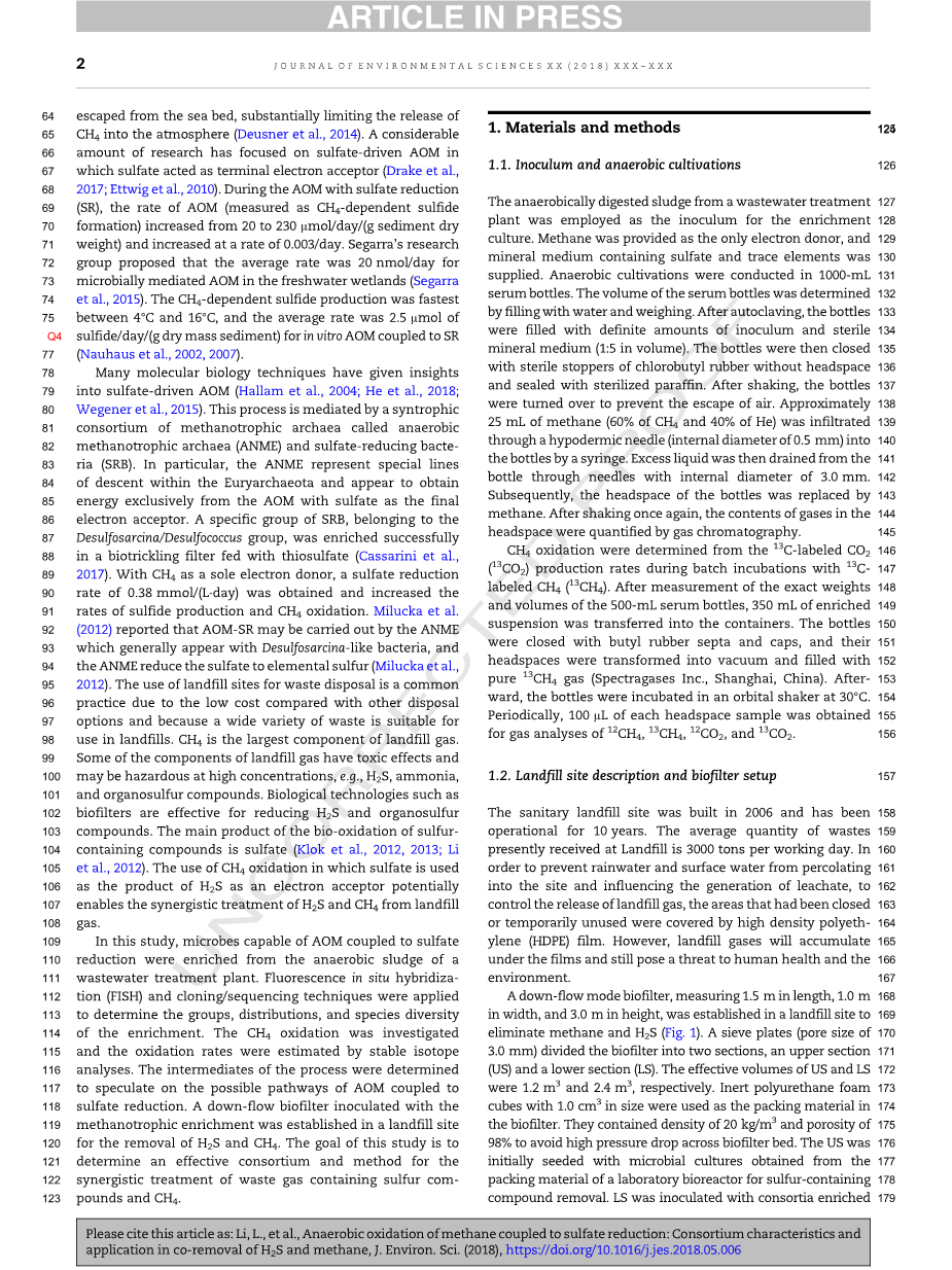 在生物滴滤池中加入硫代硫酸盐(Cassarini et al., CH4 氧化是由 13C-labeled有限公司2 146 89 2017)。与CH4 作为唯一的电子供体,硫酸盐还原(13有限公司2)批量培养时的生产率 13C- 147 90的速率为0.38 mmol/(L·d),增加了标记的CH4 (13CH4)。测量后的准确重量为148 91,硫化率和CH4 氧化。Milucka等人对体积为500 mL的血清瓶、350 mL的富集149 92(2012)报道称,AOM-SR可通过ANME悬浮液进行转运至容器中。瓶体150 93通常带有脱硫硫样细菌,瓶体用丁基橡胶隔片和瓶盖封闭,瓶体151 94为硫酸氨甲酯至元素硫(Miluckaetal)。,顶部空间被转化为真空,并填充了152 95 2012)。利用垃圾填埋场进行垃圾处理是一种常见的纯 13CH4 气体(Spectragases Inc.,上海,中国)。经过15396次的实践,由于与其他处理病房相比成本较低,瓶子在30°C的轨道摇床中培养。154