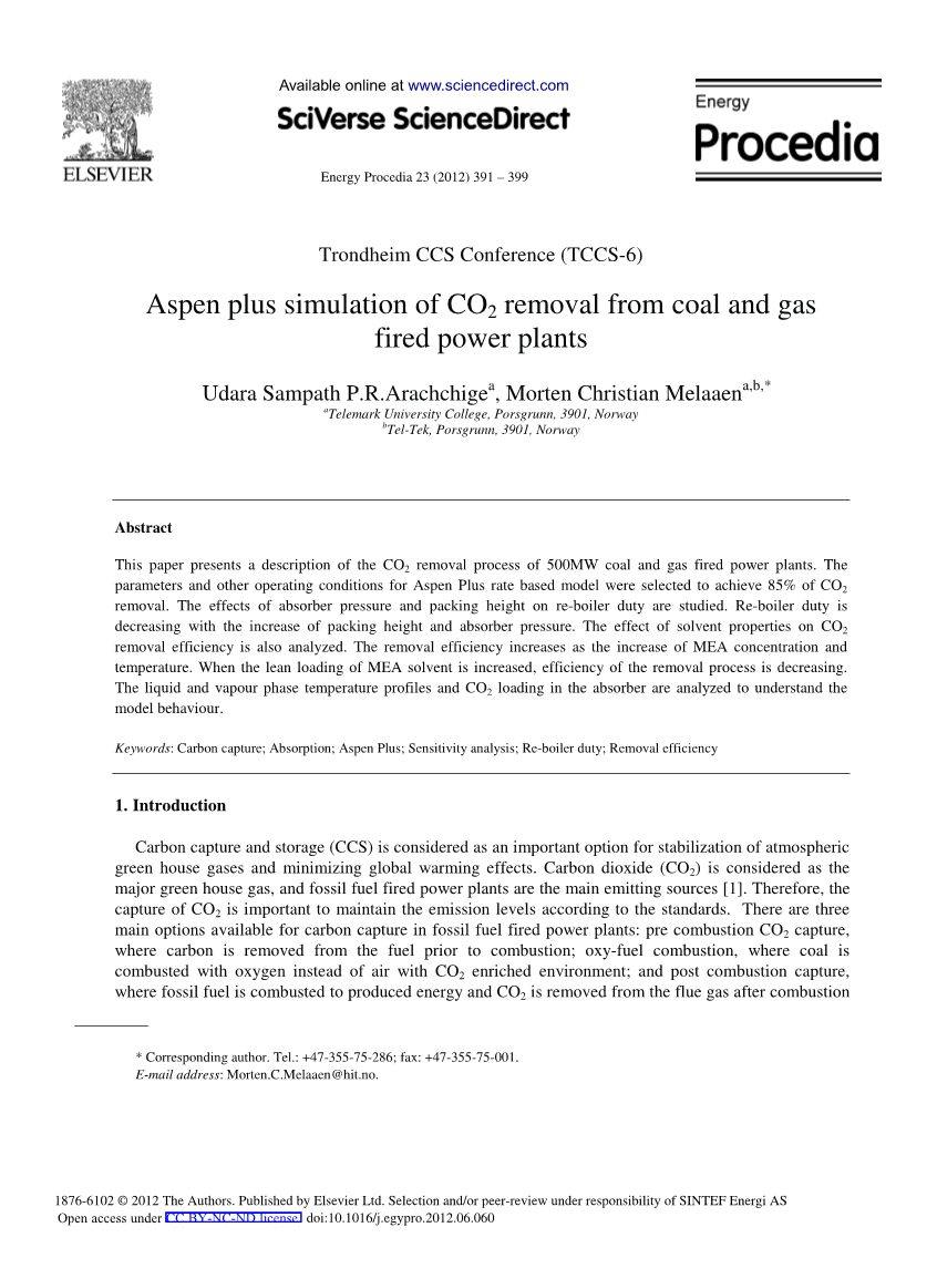 从燃煤和燃气发电厂去除CO2的Aspen plus模拟外文翻译资料