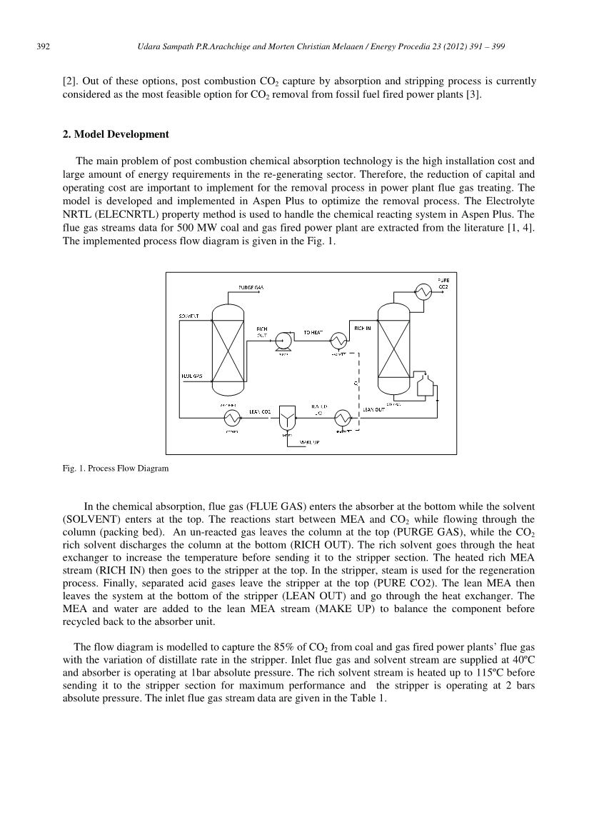燃烧后化学吸收技术的主要问题是再生装置安装成本高,能源需求大。因此,降低资金和运营成本对烟气处理过程中的去除过程具有重要意义。该模型在 Aspen Plus 中开发和实施,以优化清除过程。电解质 NRTL (ELECNRTL) 特性方法用于处理 Aspen Plus 中的化学反应系统。500 MW 燃煤和燃气发电厂的烟气流数据是从文献中摘录[1, 4]。实现的过程流程图在图 1 中给出。