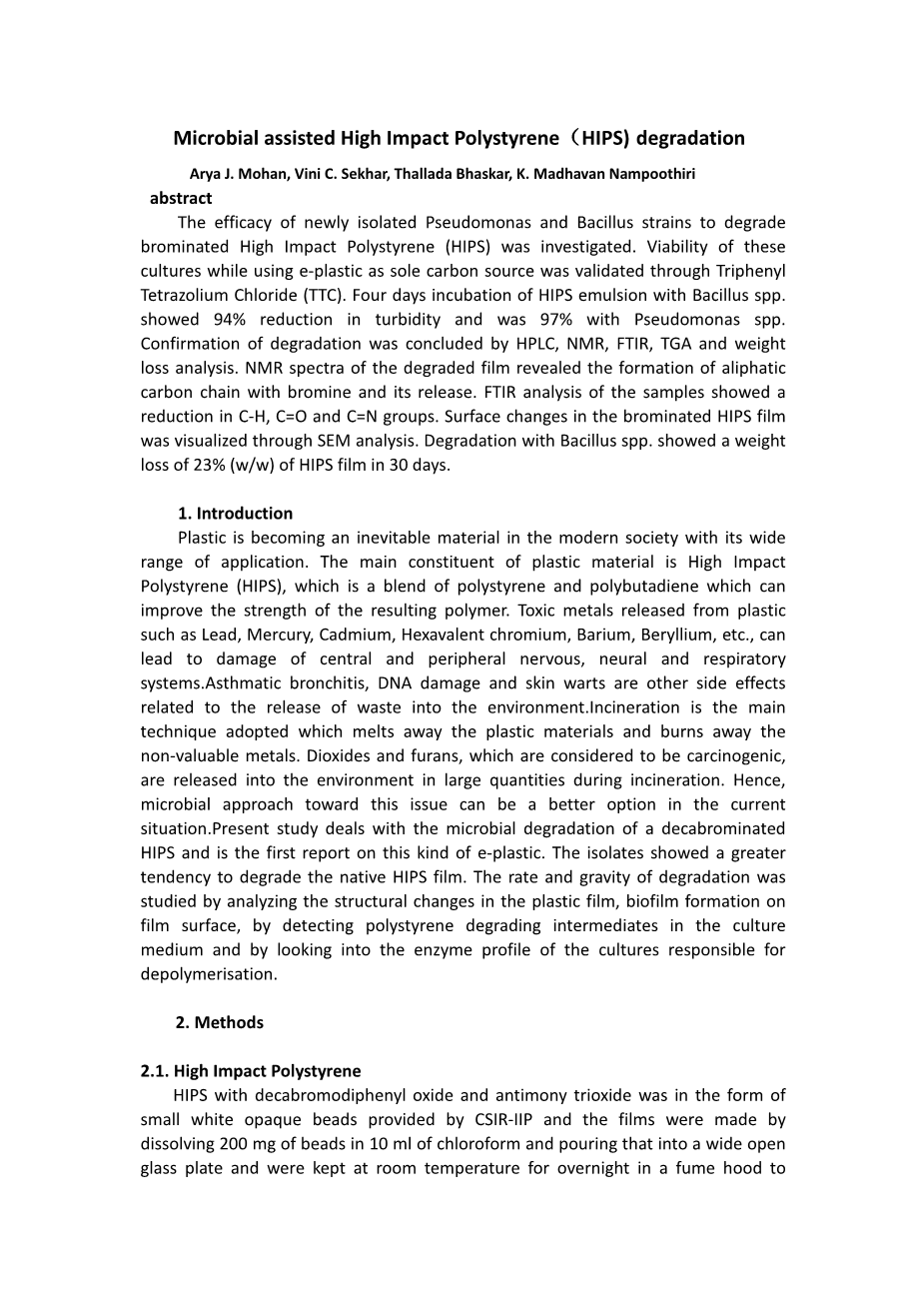 微生物辅助高抗冲聚苯乙烯(HIPS)降解外文翻译资料