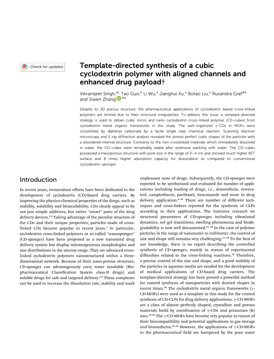 模板导向合成具有排列通道和增强药物有效荷载的立方环糊精聚合物外文翻译资料