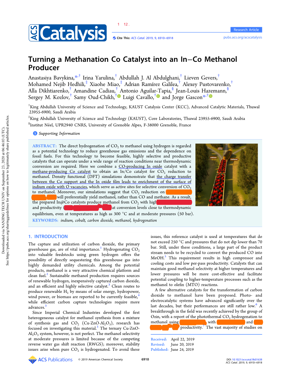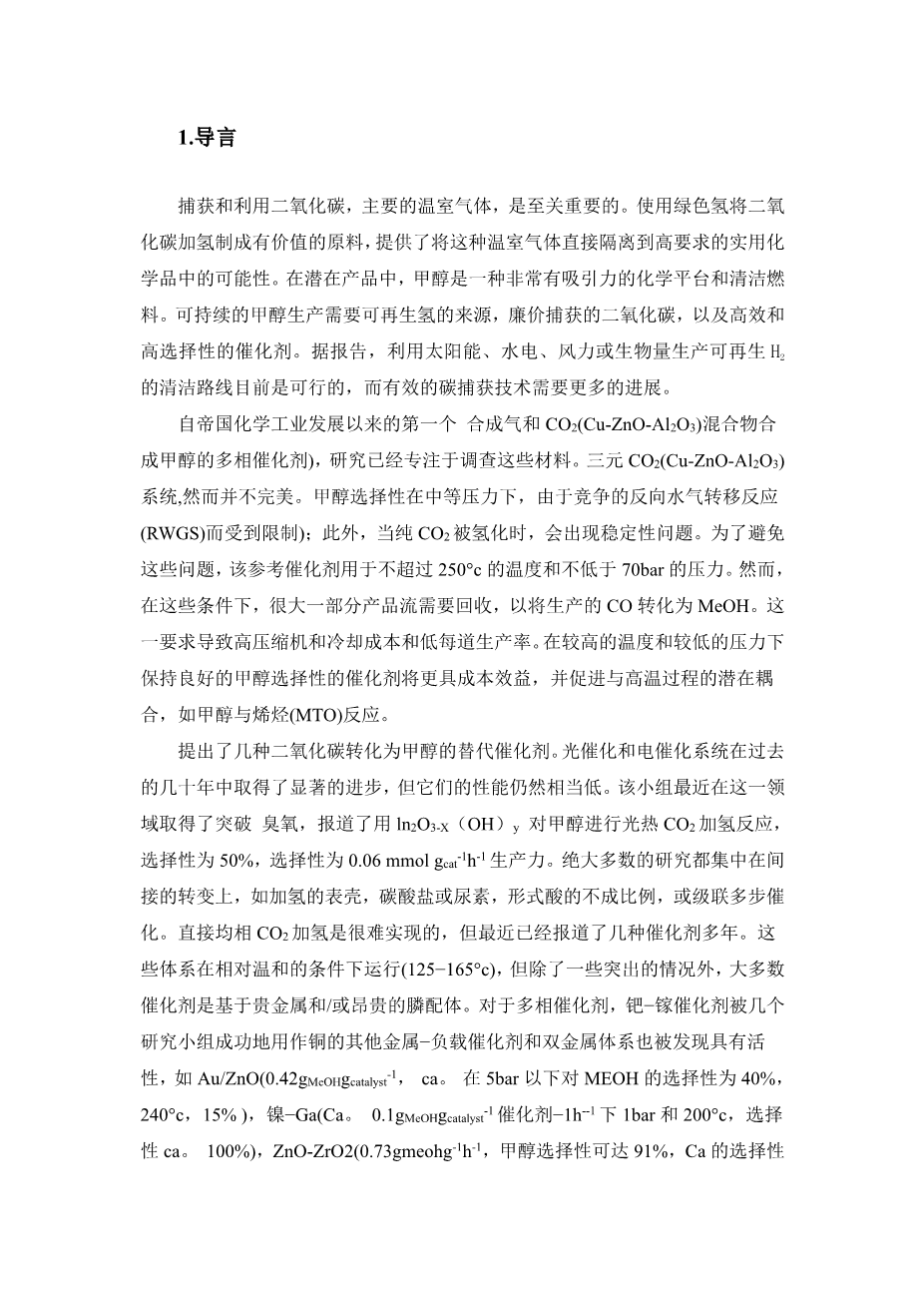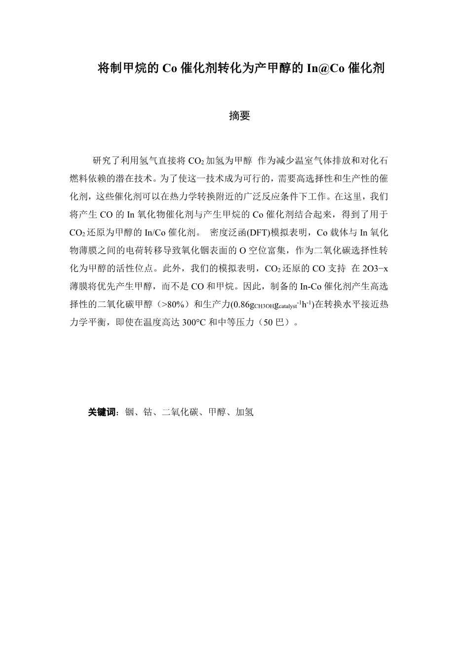 - 将制甲烷的Co催化剂转化为产甲醇的In@Co催化剂外文翻译资料