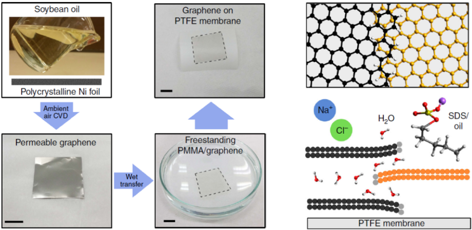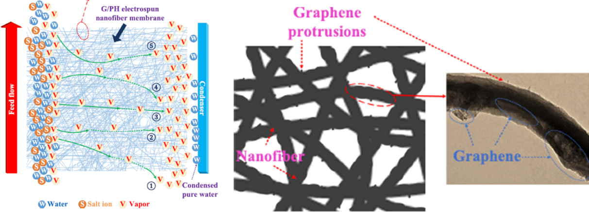 Key words: graphene, porous and hydrophobic, surface grafting, membrane distillation, desalination