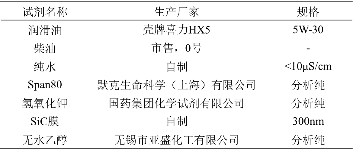 In this paper, a silicon carbide ceramic membrane with an average pore size of 300 nm was prepared. The oil in water emulsion was prepared by using lubricating oil as the continuous phase and water as dispersing phase. The effect of silicone oil film emulsification and mechanical emulsification on the preparation of oil in water emulsion was compared. The effects of water volume and pre impregnation on the effect of milk production were investigated. The size and distribution of emulsion were characterized by metallographic microscope and laser particle size analyzer. The experimental results show that the emulsion prepared by mechanical emulsification has wide particle size distribution (constant distribution spangt;1) and uneven droplets. During the process of SiC film emulsification, the droplet size increases with the increase of water content, and the average particle size increases from 3.05 μm to 3.99 μm. The size of droplet droplets decreases and distributes uniformly (spanlt;0.8). The silicon carbide film after oil immersion treatment is hydrophobic and suitable for the preparation of oil in water emulsion.