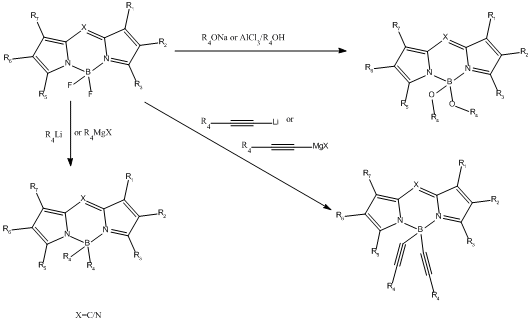 在众多的双子表面活性剂(也称Gemini表面活性剂)中,有一种比较特殊,它就是双季铵盐阳离子化合物。它的结构是这样的:一对疏水基和一对亲水基通过一个联接基团在头基处或附近处进行键合,这样的结构决定了它的诸多性能。当下,国内外的热门研究课题就是新型表面活性剂的研究,开发高活性、新性能的表活剂是一种趋势。氟硼荧染料是一种新型的荧光剂,因其具有荧光量子产率高、耐酸耐碱、光学稳定性好等特质而被广泛使用于生物、医药和能源等领域,是新时代的宠儿。而含氟硼荧的双季铵盐二阳离子化合物既具备表面活性剂的应用性能同时也可以用作荧光探针,这种化合物具有很好的开发前景。