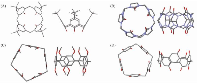 1987年,让全世界都认识了超分子化学是通过诺贝尔化学奖对佩德森,克拉姆和莱恩的表彰,由之前鲜为人知的科学实验,慢慢地被大众所认识[1]。近些年以来,主客体化学越来越普遍地受到大众们的重视,在化学领域中对它的需要也在日益增加。它作为超分子化学的一个重要范畴,化学家们正在全身心地投入到研究和合成新型超分子化合物中。像环糊精、葫芦脲和杯芳烃等一些以前的主体化合物已经在分子识别等领域开始被应用[2]。其中,有一些主体化合物被用来检测放射性重金属物质,比如由间位联苯酚形成的杯芳烃类的主体化合物化合物。但是,由于其异构体的结构和种类繁多,大多数是“杯”状或“篮”状,使得官能团在被杯芳烃的母体的构成修饰之前非常不容易地与客体分子形成比较稳定的包合物,使得它在主客体识别化学中的应用上受到了非常大的限制。[3]