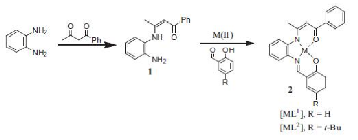 席夫碱是一类含有亚氨基(gt;C=N-)重要的含氮化合物,在1864年H.Schiff用苯胺、铜离子和水杨醛第一次合制成功,因此也称这个化合物为席夫碱(Schiff base)。席夫碱的物质结构比较特殊,特点是反应条件温和且可以灵活得挑选反应物。通过不同的给予基或取代基来改变反应物的电子,就可以构造出很多结构不同的席夫碱配合物,并且拥有不同的性能[1]。