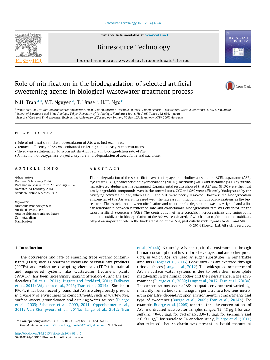 与烟曲霉复合菌剂处理造纸废水的工艺研究毕业论文有关的外文翻译资料:生物法处理废水过程中硝化作用在人造甜味剂的生物降解中的作用