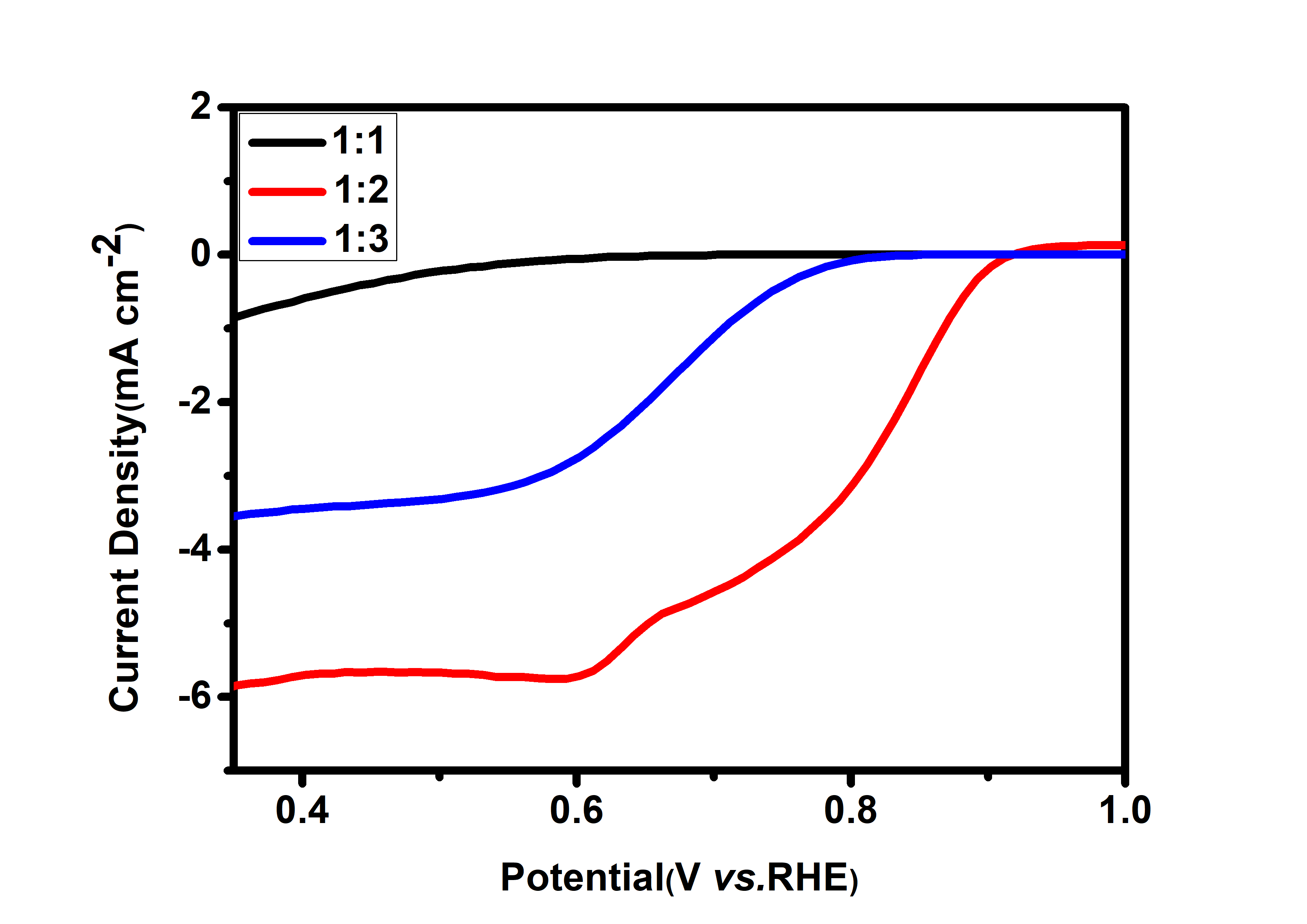 Oxygen reduction reaction (ORR) is widely used in various fields, such as fuel cell, metal-air cell, etc. In order to improve the energy efficiency, it is necessary to research the efficient, durable and low-cost electrocatalysts for ORR. Researchers found that heteroatoms-doped carbon materials showed the good electrochemical stability, a high tolerance to methanol and could avoid the poison of CO. However, the development of the heteroatoms-doped carbon materials is limited due to the complex synthetic method and the poor electrical conductivity. The method which biomass is used as a precursor to synthesize heteroatom-doped carbon materials is simple and clean, and attracts more attention. Meanwhile, the addition of a certain amount of transition metal in the materials could improve the electrical conductivity.