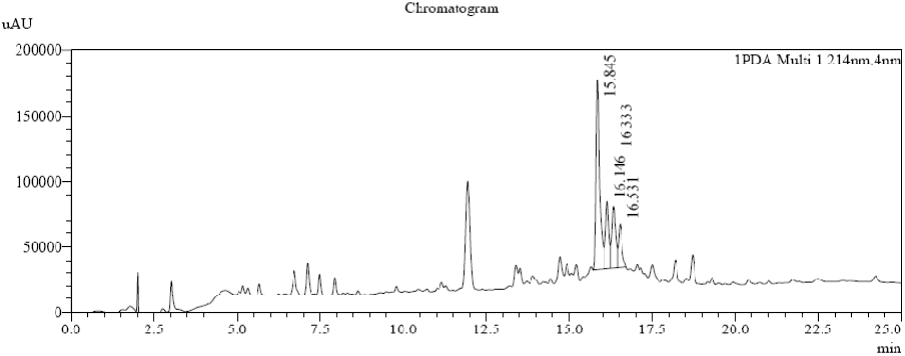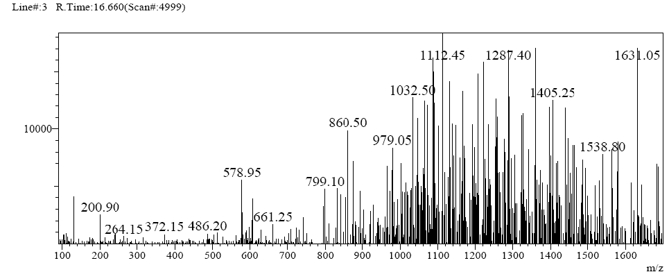 In this experiment, the analysis method suitable for the polypeptide was found through the exploration of the liquid and mass combined conditions. In the flow phase, 0.1% formic acid was used to replace 0.05% and 0.065% of the three FLUOROACETIC acid. In addition, the shunt valve used in the general liquid and qualitative use was replaced by the flow rate and the ionic strength. Through the establishment of the analysis conditions of LC - MS, the purpose of the analysis of products and the determination of impurities in the Department is realized, the function of the QC department is perfected, and the synthetic department can be more effectively combined with the synthesis department to improve and optimize the process.
