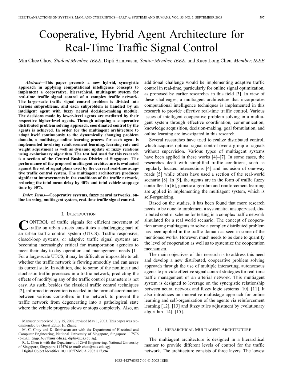 索引术语 - 协同系统,模糊神经网络,在线学习,多代理系统,实时交通信号控制。