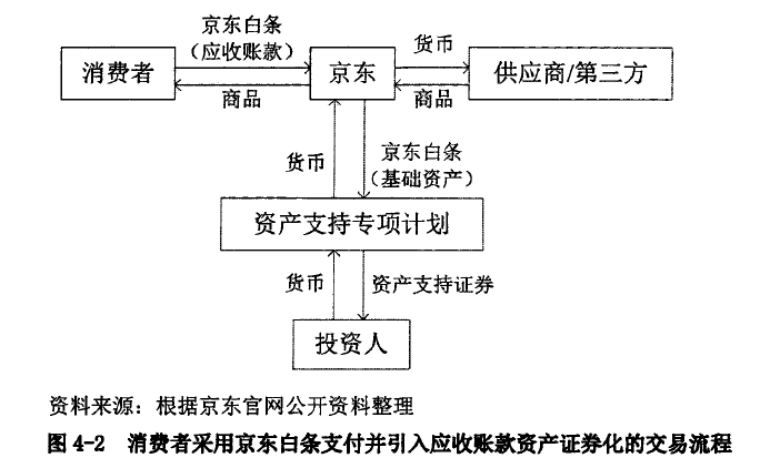 互联网技术的崛起为电子商务的发展提供了肥沃的土壤。京东、淘宝、苏宁等巨头迅速发展,微型电商不计其数,行业竞争日益激烈。在这样一个严苛的大环境下,京东通过推出京东白条实现了交易额节节攀升。京东白条规模的迅速增长为京东集团带来潜在的流动性风险。京东集团通过消费信贷资产证券化的新型表外融资方式成功解决了流动性危机。