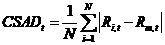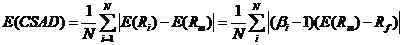 基础羊群效应模型,由于Chang (2000)是在不考虑绝对值的截面收益差进行改进提出的考虑绝对值的截面收益绝对差。孙培源(2002)也认为该指标对羊群效应更加灵敏,本文也同样将其作为关键的变量。(2.1)给出了计算CSAD的公式: