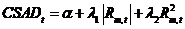 基于CAPM模型,Chang(2000)假设股票的离散程度是与股票回报的绝对值是线性相关如下式: