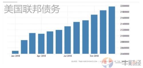 目前最新数据显示,美国联邦债总额已突破22万亿美元的关头,这已经是全世界最高的债务数据,美国的联邦债务总额占GDP的比重已经达了106%的较高水平,如果经济学的长期理论来看,经济体债务赤字总额与GDP之比值在正常下应该是低于65%,然而目前美国的债务状况显然远远地超过了这一水平。可是即便如此,美国政府也没有丝毫开源节流控制花销的意思,当全球投资者纷纷开始抛售美国国债相关资产的时候,美国联邦依然毫无节制地扩大支出,财政赤字不降反增,根据美国财政部的报告,美国2018年的财政赤字达到了7790亿美元,这是六年来的又一个高点,而且2019财年直逼1万亿美元大关。美国政府的财政赤字问题变得越来越严重。[1]
