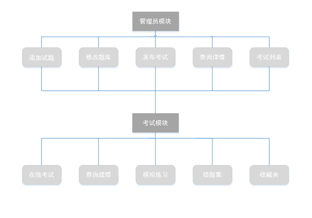 Based on the actual situation and the collected data, the system has designed both background and front-end functions. The background is mainly logged in as the administrator for the corresponding test questions and question bank management, such as test questions and question bank maintenance; at the same time, the web-side can publish the examinations required to be performed or mock exams to push the examination information to the people who need relevant examinations, and The background can view the detailed information of previous exams. WeChat designed the examination module. The personnel who need to take the test can select the corresponding test subject according to their own needs; simulation exercises, online simulation exercises based on the background simulation questions; test bank exercises, the candidates prepare for the appropriate question bank to practice , And the practice is divided into the back questions and do questions mode; test details, previous users of the test information involved in the function can be queried. And in order to achieve some of the review results, the two functions of favorites and wrong questions were designed, and the user's wrong question system will be automatically saved. The collection is the user's initiative to add the appropriate questions, to help users master the relevant knowledge, improve the passing rate of the exam