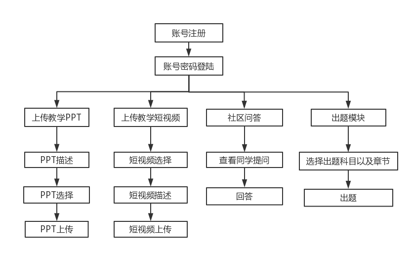 整个系统能够完成教师端和学生端的相应功能。教师端的主要功能是注册登录;上传学生所需的学习资源,包括教学PPT、短视频;给学生出题和与学生问答。学生端的主要功能是登录注册;学习相应的学习资源,包括教学PPT、短视频,并记录学习进度;答题和进行问答。整个系统能够帮助学生进行课后自助学习以及帮助老师对学生的学习情况进行了解监督,是有一定意义和价值的。