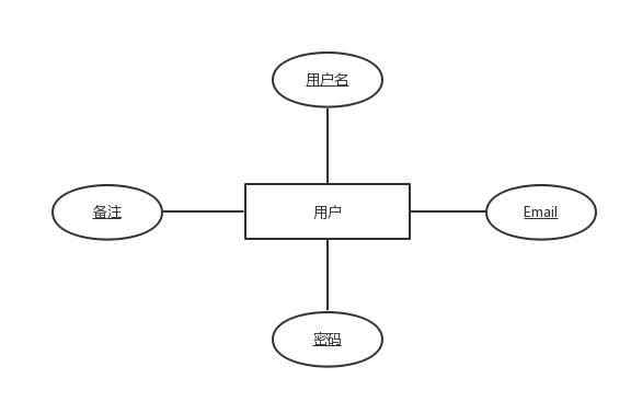 (1)用户实体属性图。用户有用户名,密码,Email,备注4个属性。用户实体属性图如图3.1所示。