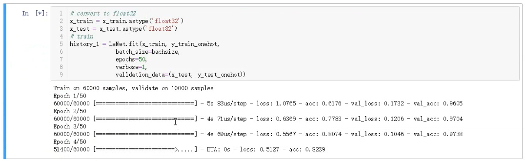 要实现卷积神经网络对手写数字体的识别,能体现出这个具体过程,而且能给出结论。这个手写体识别是从提取mnist数据集开始的,然后输出载入了多少个样本以及他们的尺寸大小。最后输出的内容包括最主要的acc(正确率)以及loss(丢失率),还有就是逐渐通过训练产生的变化要有具体的体现。最后输出的内容包括训练集和测试集的准确率和错误率,test_acc、test_loss、train_acc和train_loss这四项数据是展示出来的,通过50次的迭代学习得出的最高准确率的数据呈现出来。最后就是可视化的界面,把这四项数据通过曲线的方式展示出来,观察现象。