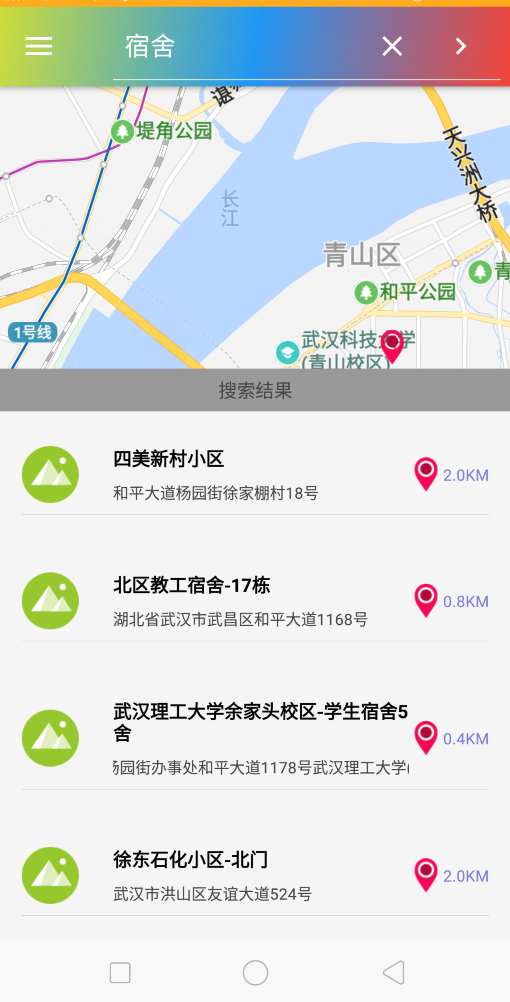 主页面上出现系统搜索到的信息,用户通过信息可以找到自己的目的位置 |