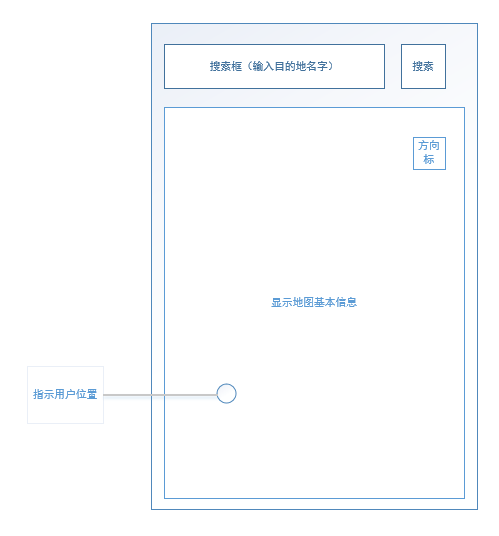 用户可看到自己位置信息,可以看到地图信息,可以进行搜索操作 |