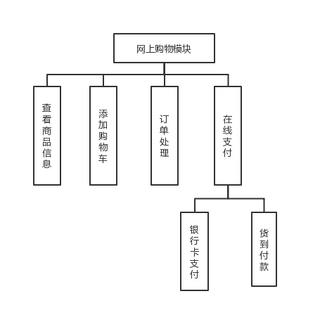 (4)网上购物模块:该模块主要是模拟网上购物的流程。用户通过查看商品详情后将商品添加购物车,在购物车里用户可以勾选满意的商品进行付款,选择付款时可以选择货到付款以及在线支付两种购物方式,在购物完成后用户可以查看订单,也可以对订单进行删除操作。