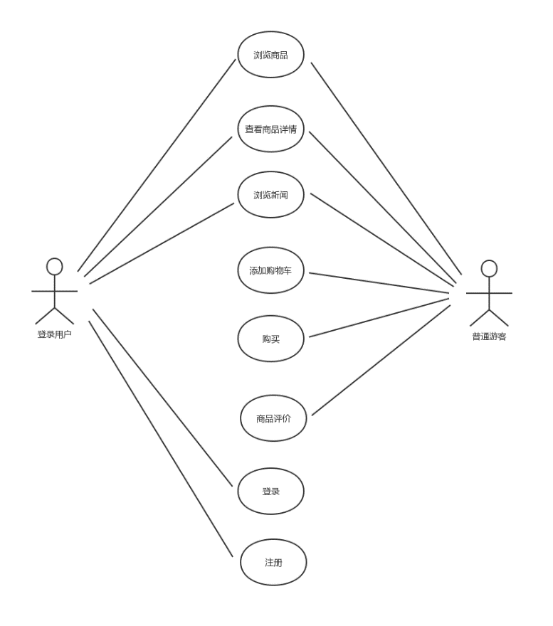 前端需要实现以下功能:登录;注册;浏览商品;查看商品详情;添加购物车;购买商品;对购买的商品进行评价。