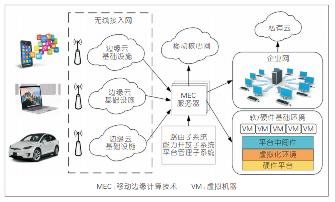 在2014年,ETSI就起草了有关移动边缘计算的标准,移动边缘计算是一种新型的网络结构,它能够提供一定的应用服务环境和计算能力,简单地说,MEC就是将云计算中心的任务部分卸载到网络的边缘,这样就可以为一些服务提供高带宽和低延时性能。随着研究的不断进展和深入,在初始阶段研究的MEC中的‘M’也改变了含义,先前指的是“mobile”移动网络的意思,后来边缘计算的应用不断扩展,现在指的是“multi-access”,也就是多接入的含义,因此,MEC现在不仅可以称为移动边缘计算,也可以叫做多接入边缘计算[21]。