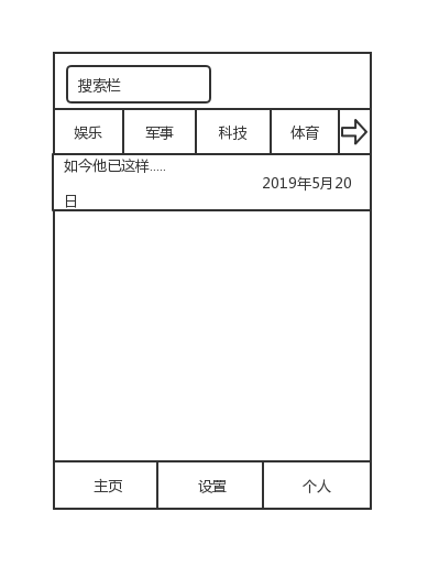 - 新闻详细界面,分为娱乐,军事,科技,体育板块。