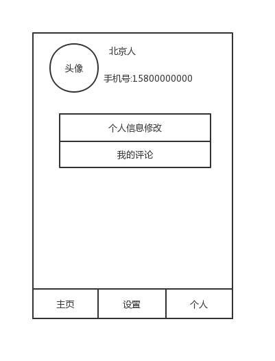 - 个人界面,既可以修改个人信息,又可以查看个人评论等。