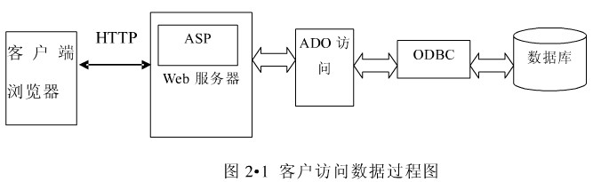ASP程序主要工作在Web服务器端,当用户对浏览器进行操作后,浏览器就向服务器发出一个HTTP请求,然后系统就会产生一个.asp类型的文件,之后Web服务器会对该请求予以响应,同时也会调用相应的ASP引擎对这个文件进行相应的安排,当ASP引擎遇到任何与Active脚本兼容的脚本时调用相应的脚本时就开始解释并执行其中的脚本命令,如果程序中含有的请求是要访问后台的数据库里面的数据信息,那么系统就会借由ODBC程序为媒介去与系统后台数据库建立一个链接,再经由数据库访问组件执行访问操作,最后,ASP程序会根据与数据库逐渐联系的结果集自动生成合乎规范的HTML页面响应客户浏览器的请求。主要过程如下图1.1所示: