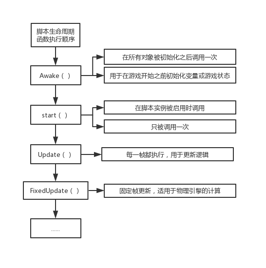 在Unity3d中,脚本的生命周期是时十分完善的,而且任何脚本都必须遵守该生命周期,其中有几个比较重要的系统自调用方法,下图对常用的几种重要的自调方法进行了介绍,包括自调用方法的启用时机、通常的用途、执行的次数和时间等。