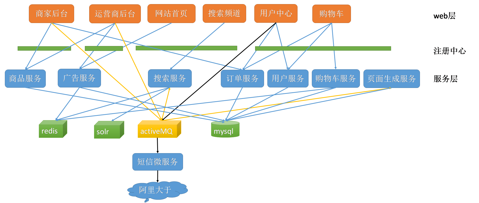 The main work of this system is the design and implementation of an e-commerce system. The entire e-commerce system adopts the B2B2C mode, which divided into three roles: operators, merchants, and users. Operators can review merchants, review merchandise, and manage merchandise. Merchants can add items, process orders, and view sales data. Users can browse products, search for items, add items to their shopping carts, place orders, and modify their information in the user center. The biggest feature of this system is the distributed architecture, which adopts the distributed framework Dubbox, with Zookeeper as the registration center, plus the more popular Spring, SpringMVC and Mybatis frameworks. The front end is done with angularJS and Bootstrap. In order to make the system closer to the actual needs, the webpage staticization technology FreeMarker is used to generate the product detail page. On the user login page, Alibaba Cloud's short message service is combined with Spring Boot to develop a microservice that sends a verification code. On the search page, use solr to configure the Chinese analyzer IK Analyzer to complete the entire search function.