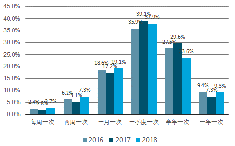 图 1.3 2016-2018年中国旅游用户游览国内景区平均频率