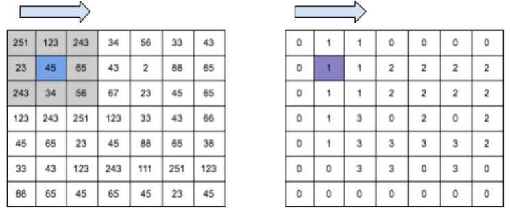 近些年来,随着图像分割和识别领域的热度不断提升,越来越多的目光聚焦于此,众多专家学者也曾提出许多优秀的图像分割算法。从传统的领域来讲,在2003年王茜等人[6]提出一种自适应阈值为基础的图像分割方法,采用最大类间方差的思想,使用分割出的前景-背景区域的灰度值统计量来对分割结果进行后续的判断,不过该方法普适性较差。Sirshendu Horel等人[7]在阈值分割的基础上提出阈值与区域生长集成的交互技术,提出一种基于像素强度的均匀性,并通过人工选择、迭代法、Otsu法、局部阈值法等多种方案确定阈值,以获得最佳的阈值。该方法比传统的阈值和区域生长法都取得了更好的实验结果。但是,由于它是一个交互式系统,种子的选择是手动选择的,这就不免会出现由于种子选择而导致最终的分割成果有很大的不确定性的问题。虽然其在抗噪性能方面已经有了进步,但仍对噪声略为敏感,在某些情况下会导致部分图片像素块有空洞的产生。此外,它并不是并行算法,而是串行算法,在一些情况下会导致分割速度明显变慢,例如遇到目标较大、区域模糊等情况时。