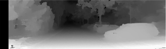 道路识别图像预处理方法是在进行道路识别之前,对相关的图像进行处理,使其能够得到更加显著的特征,从而得到更好的道路分割结果。李琳辉等人[2]提出通过半全局立体匹配算法获取视差图D与原RGB图像结合所得到RGB-D图像并进行平滑处理,以此来建立样本库。图1.3为从使用的数据集中随机选取的一对三维道路图像经过处理的结果,其中(a)为原图,(b)为未经特殊处理的视差图,(c)为使用特殊方法得到的视差图,从图中可以很明显得看出,经过平滑处理操作的视差图将物体的信息更好地呈现出来,其边缘和轮廓信息更加的明显。最终基于RGB-D的分割精度优于基于RGB图像的分割精度。