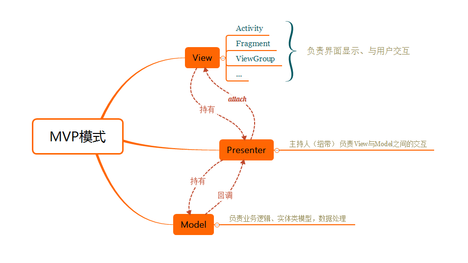 MVP(Model-View-Presenter)模式是由MVC模式演变而来,它和MVC有着很大的区别:MVP中的view并不直接从model中获得数据,它们之间的所有交互都是通过presenter来进行的,而MVC中view直接与model交互而不经过controller。