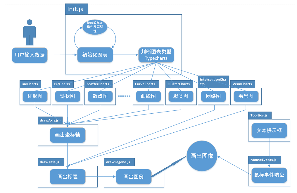 数据可视化的关键在于可交互性,虽然excel也可以完成图表的数据可视化,但是它往往是一张静态的图片,不具备交互性,同理R虽然具有强大可视化能力,但是其对于交互性的支持无能为力,基于以上我们决定采用基于D3.js库和SVG的定制化从前端实现可交互数据可视化插件。插件的编写主要从以下角度出发: