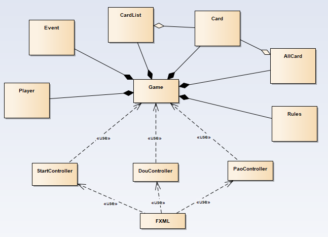纸牌游戏多种多样,在中国,受众最广,最受欢迎的是基于扑克牌的纸牌游戏,针对这类纸牌游戏的特点,进行游戏规则模块的开发。游戏实体包含多个玩家,玩家牌组,针对牌组,玩家进行依次循环出牌。