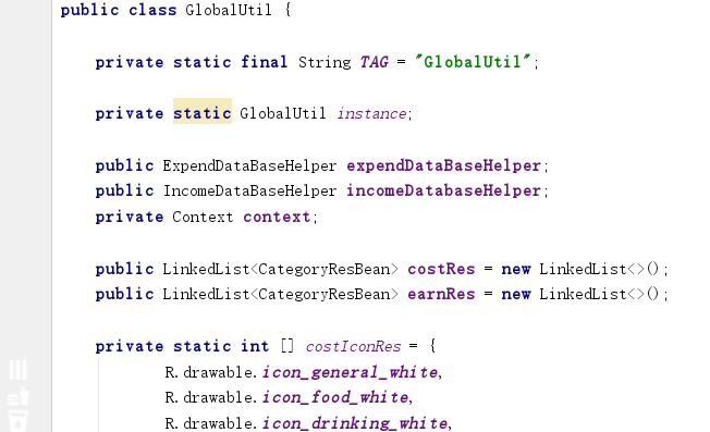 这里主要介绍几个项目全局的技术内容,分别是全局资源类GlobalUtil、时间资源类DateUtil、自定义账目数据结构RecordBean。