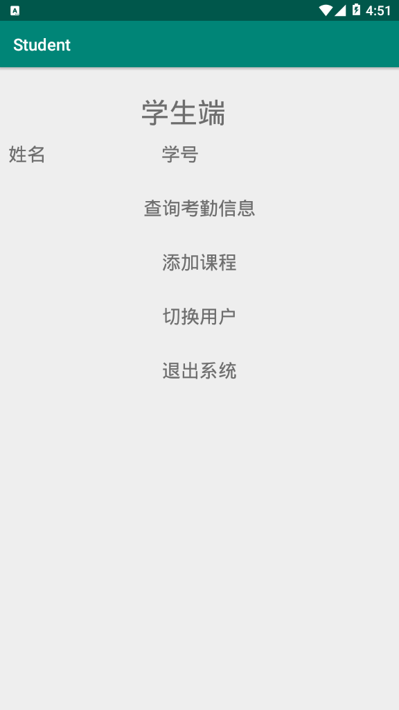 再就是对主界面设计,我们可以看到老师端的功能要繁多一些,所以我们在对老师端的主界面进行设计的时候考虑到用户交互使用了侧滑菜单。学生端功能少可以直接在主界面设计按钮直观又简洁。