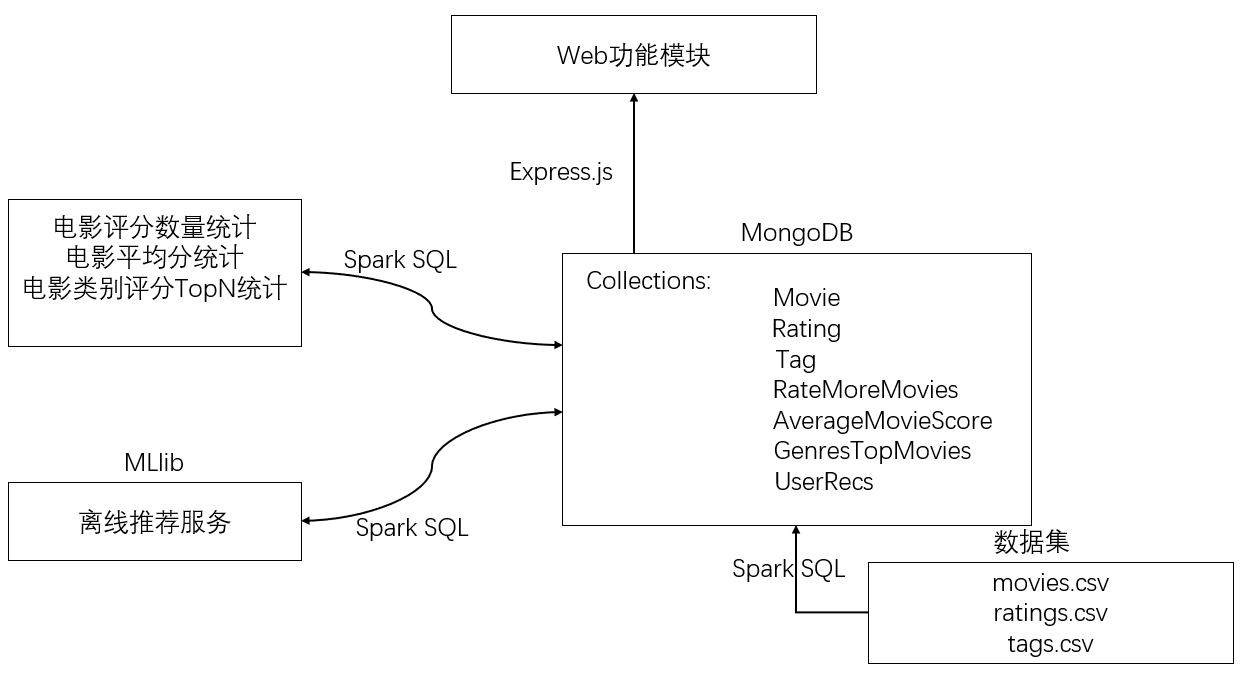 In this paper, a personalized movie recommendation system is developed. The system recommendation algorithm module use ALS collaborative filtering algorithm, which analyzes a large amount of movie information and user rating information, and predicts the user's rating of movies that have not been watched or watched but have not been rated, so as to recommend movies that may be of interest to each user. During the development of the system, Spark SQL was mainly used as the data container, and Mllib's ALS algorithm was used to predict the user's movie matrix, which solved the cold start problem based on the user's collaborative filtering algorithm to a certain extent, and in the front-end implementation. This article uses the Express.js framework to build, and for some of the more important steps or modules, this article describes in more detail in the system design and implementation chapter.