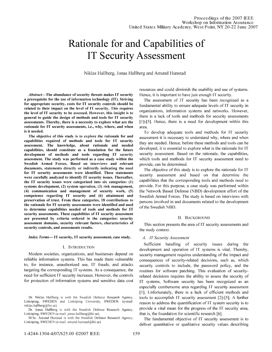 本研究旨在探讨IT安全评估方法与工具的基本原理及所需能力。有关理论和所需能力的知识,应为未来IT安全评估方法和工具的发展奠定基础。这项研究是作为一个案例研究在瑞典武装部队进行的。根据访谈和相关文件,确定了直接或间接表明需要进行IT安全评估的声明。这些声明经过仔细分析,确定了IT安全问题。此后,信息技术安全问题被分为六类:(1)系统开发,(2)系统运行,(3)风险管理,(4)安全工作的沟通和管理,(5)信息技术安全方面的能力,(6)实现和维护信任。从这些类别中,确定了对信息技术安全评估基本原理的18项贡献,并用于确定信息技术安全评估所需工具和方法的能力。信息技术安全评估的这些能力是按照以下类别中的标准来呈现的:安全评估领域、安全