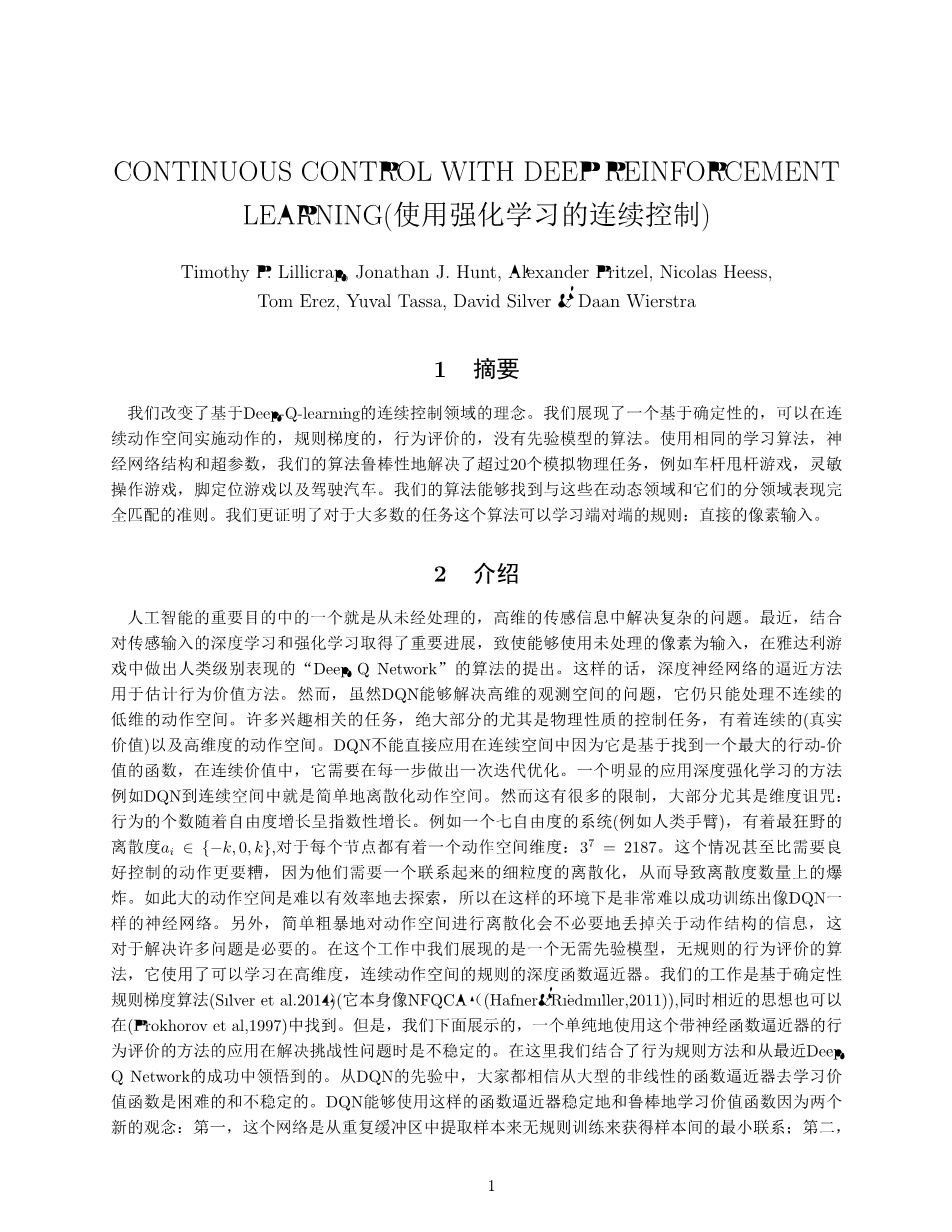 Timothy P. Lillicraplowast;, Jonathan J. Huntlowast;, Alexander Pritzel, Nicolas Heess, Tom Erez, Yuval Tassa, David Silver amp; Daan Wierstra