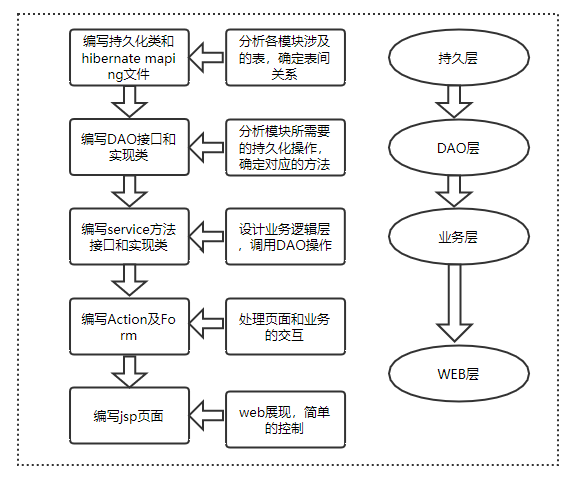 第三章,系统开发所需的关键技术及开发环境。先介绍了系统设计中采用的关键技术——Spring框架、Hibernate框架、Struts框架、jsp技术、javascript技术和数据存储技术等,最后对系统开发所需的硬件环境和软件环境进行简略介绍。