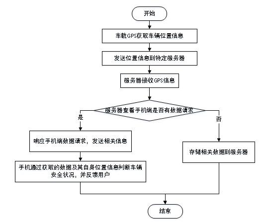 本装置的主要工作流程为:车载gps定位部分采集车辆的当前位置信息,通过gsm网络传输数据到指定服务器,手机app访问服务器获取车辆位置信息,并实时判断车辆是否被盗。因此,本装置主要分为三个部分:车载gps定位部分,无线数据传输部分,手机移动终端app部分,该装置的基本研究设计内容即为以上三个部分,基本工作流程图如下所示。