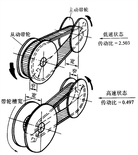 的大小直接影响传动比的可控范围,CVT调速过程如下图3.1所示。