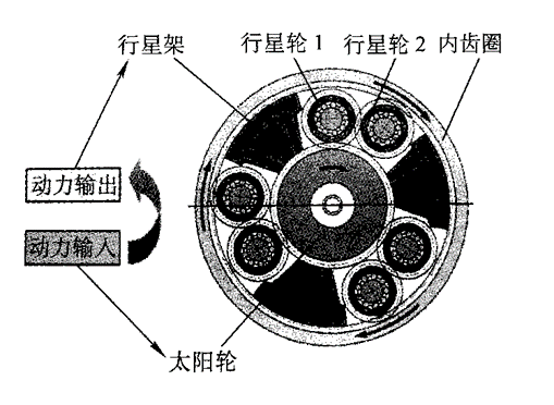 汽车前进过程中,动力从发动机输入,前进挡离合器通过接合飞轮接合传递动力,动力传到行星架后,太阳轮带动主动带轮。主动带轮通过与金属带的V形摩擦片接触从而产生摩擦力,也正是这个摩擦力驱动摩擦片向前运动,以此类推,又推动前面一个摩擦片,两者之间又产生压力。在CVT的无级调速过程中,主、从动带轮的中心距是固定不变的。汽车的电控系统发出指令让CVT的液压装置控制移动锥盘的轴向移动,这样就使主、从动带轮工作半径发生改变,传动比也随之发生变化。当压力摩擦片与锥盘的接触面上形成之后,移动锥盘靠近固定锥盘移动时,摩擦片在V型槽内部从外向内的运动,产生的压力就越大,传动比也越大,传动的力矩也随之而增大,反之则传动比减小,传递的转矩也减小。力矩通过金属带驱动从动带轮,之后再将动力经过中间减速齿轮和主减速器以及差速器分配到驱动轮上。当汽车需要实现倒退行驶时,先使前进挡离合器与飞轮分离开来,换上倒挡离合器与飞轮接合,这样行星齿轮机构的内齿圈就被固定,内行星轮与太阳轮相啮合,外行星轮与内齿圈相啮合,两次啮合改变了传递到太阳轮的力矩方向,这样就改变了主动带轮的转动方向,从而使驱动轮的运动方向发生改变。